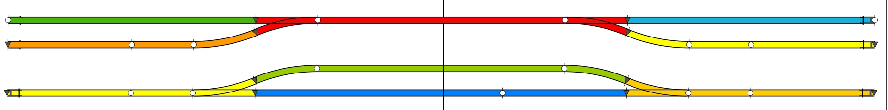 The upper track is made from code 75 rail and is fully ballasted. It operates as an automatic shuttle.